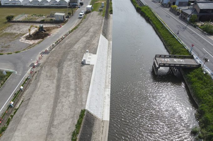 発注者 愛知県一宮建設事務所 工事名 地盤沈下対策河川緊急整備工事・小規模河川改修合併工事 施工箇所 稲沢市 工事概要 護岸工(左...