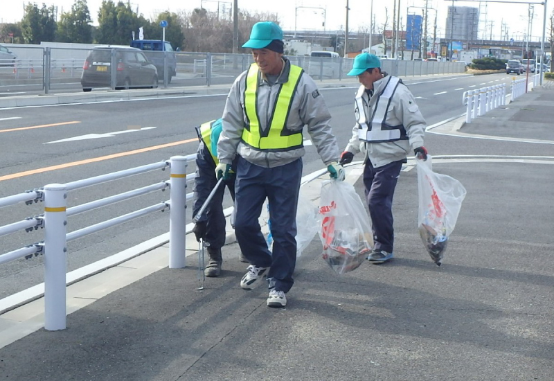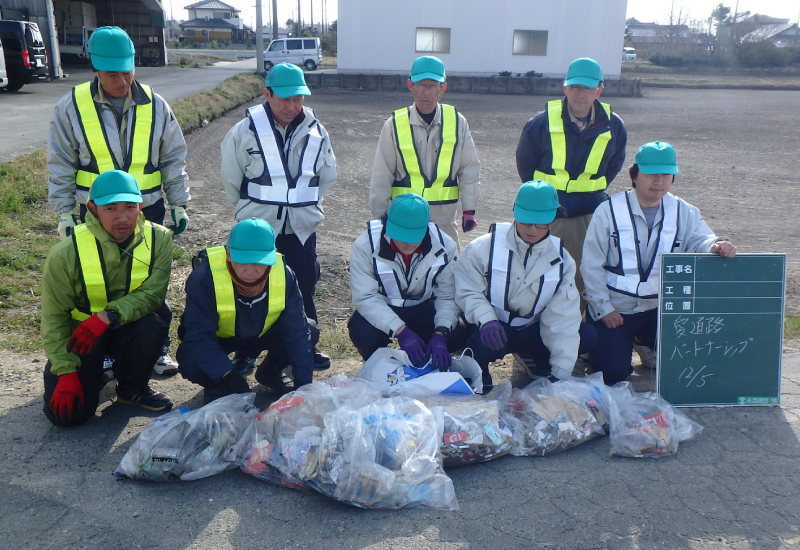 愛・道路パートナーシップ協賛企業として、定期的に 社員一同、西尾張中央道の歩道清掃を行い、道路の環 境美化の一端を担っております。