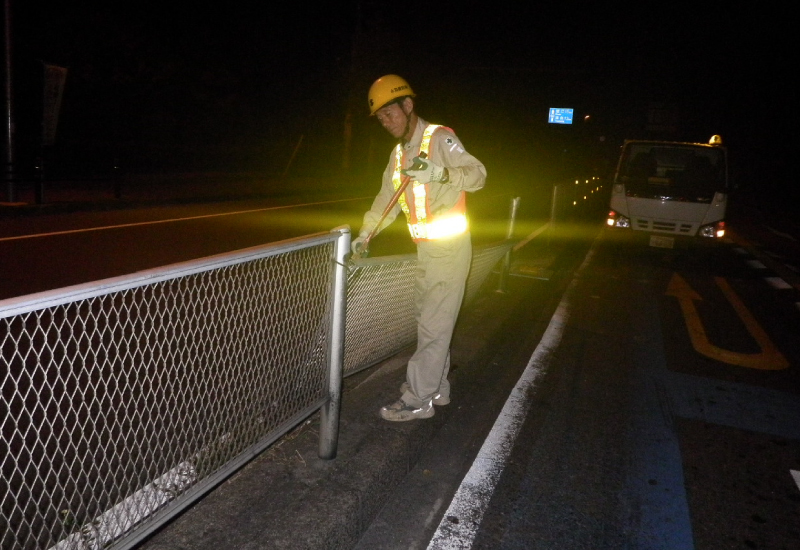 愛知県との業務委託により西尾張中央道(県道65号線)の緊急維持対策を行っております。県の要請があった場合24時間体制で道路上の落下物・交通事故による破損物の撤去などを行い、道路の安全を守っております。また近年増えてきた極地的な豪雨などによる河川の有事には、これも県との委託により被害を最小限に抑えるべく緊急維持活動を行います。